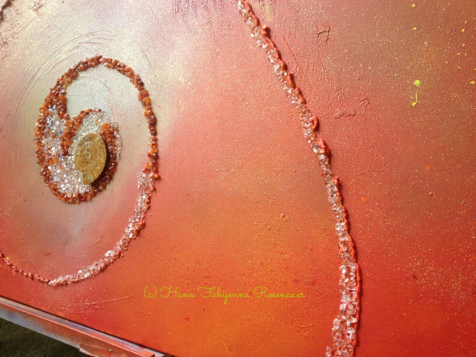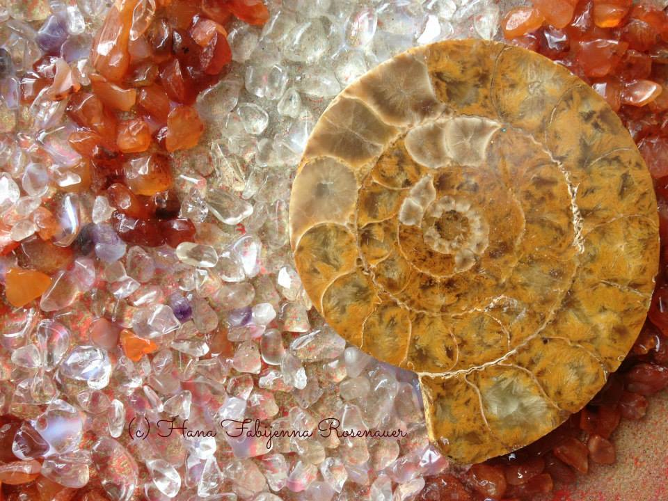 Mit Bergkristal,Karneol minichips,Fossilien.
